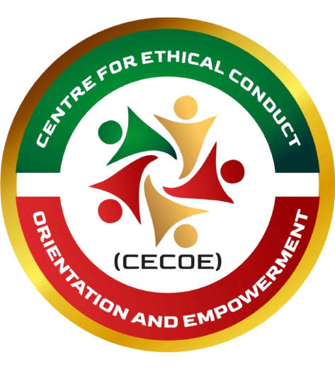 The Centre for Ethical Conduct Orientation and Empowerment (CECOE) is a distinguished non-governmental organization committed to advancing ethical leadership, civic responsibility, and integrity-driven development. Established in 2012 and officially incorporated in 2016, CECOE is duly recognized by local and international bodies and operates in collaboration with public institutions, private stakeholders, and civil society actors.